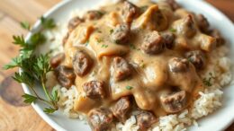 Creamy Beef Stroganoff with Rice Introduction Creamy Beef Stroganoff with Rice is a classic dish that combines tender beef, flavorful mushrooms, and a rich creamy…