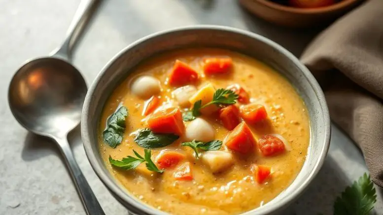 Imagine a warm, comforting bowl of creamy vegetable soup that not only tantalizes your taste buds but also nourishes your body. This vegan dinner recipe is a masterpiece of simplicity, using everyday ingredients to create a dish that is both healthy and healing. The beauty of this recipe lies in its ease and flexibility, allowing you to get creative with your favorite vegetables and spices. Whether you’re a busy professional looking for a quick weeknight dinner or a health enthusiast seeking a nutritious meal, this creamy vegetable soup is sure to become a staple in your culinary repertoire.
