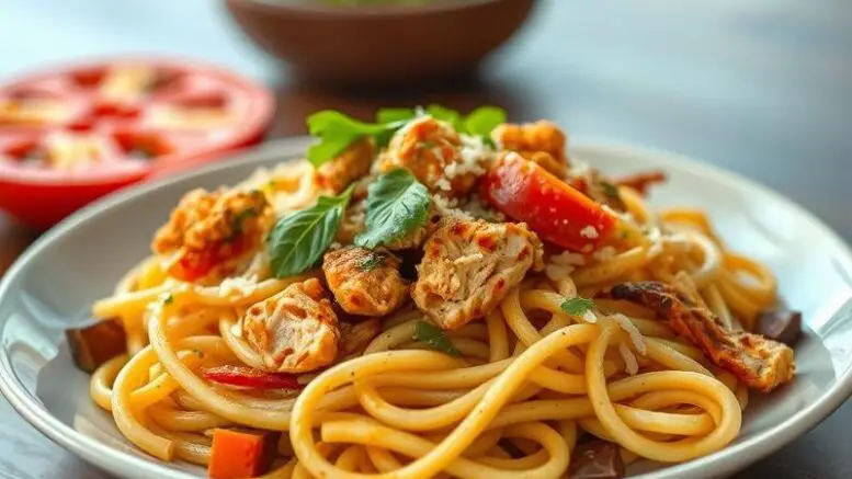 This Flavorful Chicken Fajita Pasta Delight is a true showstopper – it’s easy to make, packed with flavor, and sure to impress. Whether you’re a seasoned chef or a beginner in the kitchen, this dish is a great option for a quick and delicious weeknight dinner. So go ahead, get creative, and make it your own! With its perfect balance of flavors and textures, this dish is sure to become a new favorite.