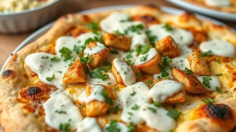 Imagine a dish that combines the creamy freshness of tzatziki sauce, the savory flavor of chicken, and the crispy texture of naan bread, all in one delicious pizza. This Tzatziki Chicken Naan Pizza Recipe is a creative twist on traditional pizza, using everyday ingredients to create a truly impressive and mouth-watering meal. With its perfect balance of flavors and textures, this recipe is sure to become a favorite in your household. The best part? It’s incredibly easy to make and requires minimal effort, making it perfect for a quick weeknight dinner or a fun weekend meal.